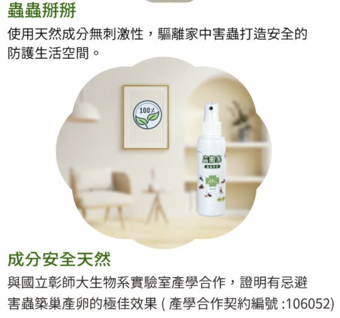 ✔️內含農業部防檢署核發天然資材植保製字第277號防除蟲害成分。 ✔️經國立彰師大生物系林宗岐博士實驗室產學合作,證明有忌避害蟲築巢產卵的極佳效果(產學合作契約編號:106052) ✔️通過農業部農藥所無毒性檢測(TX-280aoc),無皮膚刺激性檢測(TX-293skc)