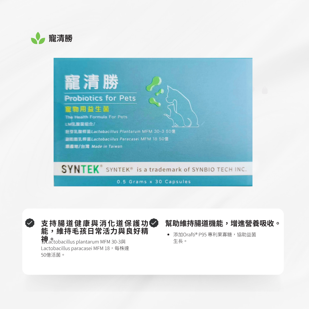 專為毛孩健康設計的益生菌配方,幫助維持腸道菌叢平衡,守護寵物每日活力!